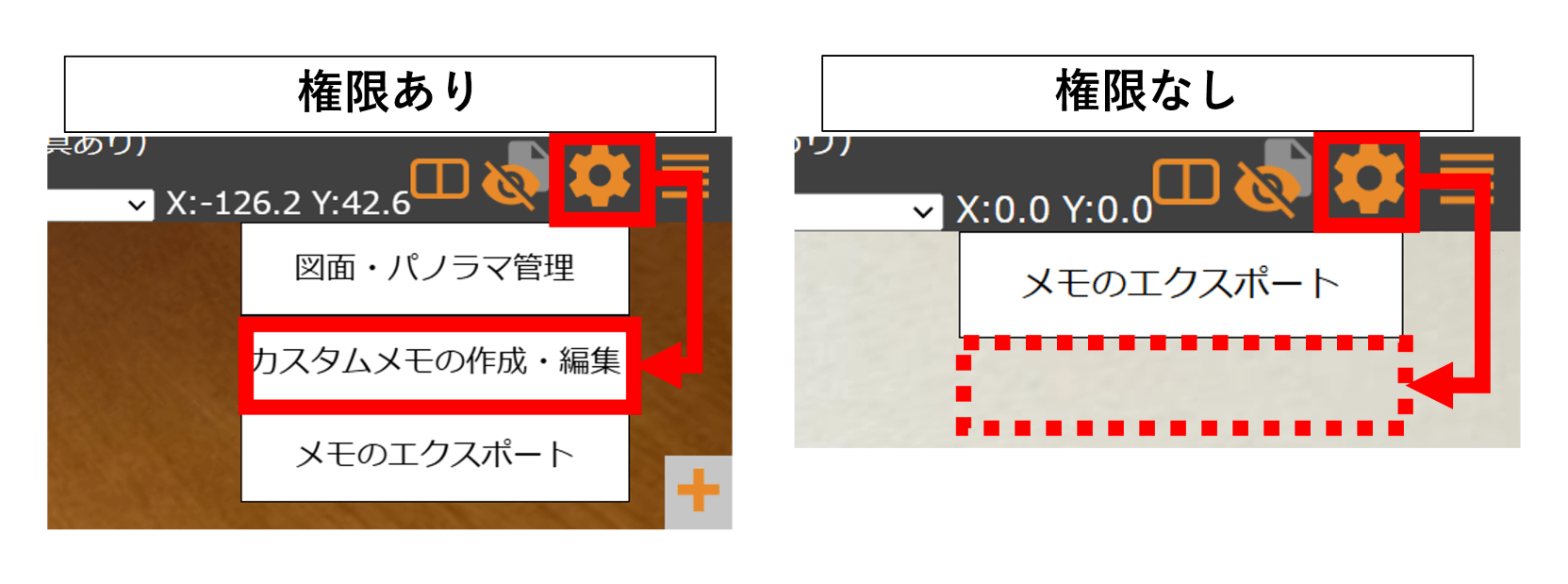 ● カスタムメモを使い、パノラマ写真上または図面上に1つでもメモを貼り付けている場合