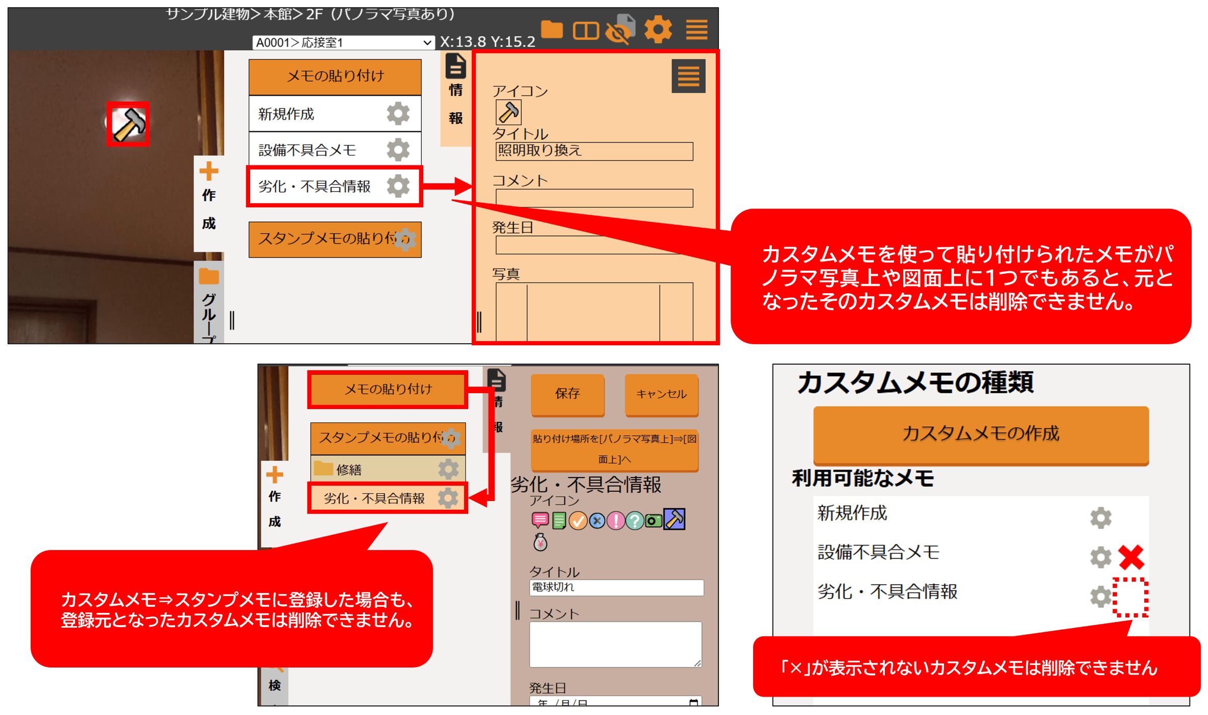 ~以下の場合、該当のカスタムメモを削除することはできません~